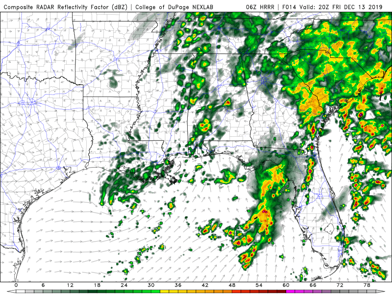 More than one round of showers/thunderstorms will move across most spots. During the afternoon, an isolated strong to severe storm could develop because of an increase in energy around for activity to take advantage of. This threat looks fairly low and would likely be confined to the Jacksonville area. Strong wind gusts are the main concern.